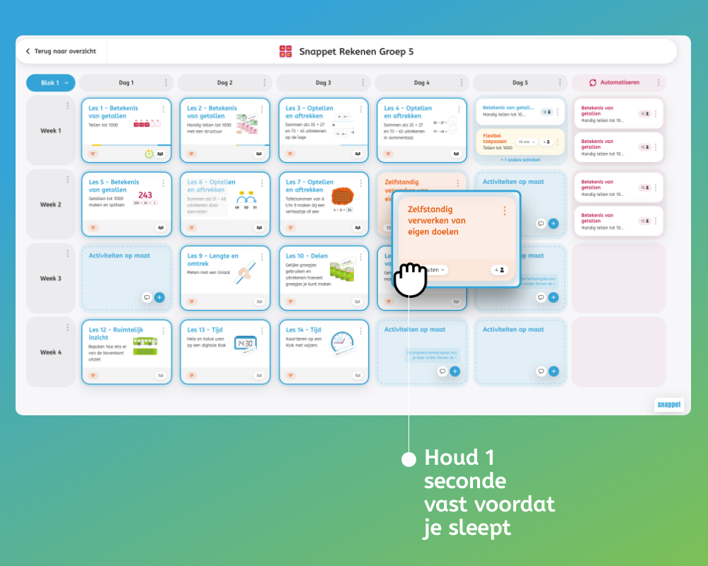 Een belangrijk onderdeel van feedback is het reviewen van je eigen werk. Leerlingen kunnen nu na elke set gemaakte opgaven terugkijken naar wat al goed ging en waar ze nog wat foutjes maakten. Dit geeft de leerlingen inzicht in welke onderdelen van het leerdoel ze al snappen en welke onderdelen ze nog lastig vinden. Ze kunnen een opgaven aanklikken om deze opnieuw te proberen.
