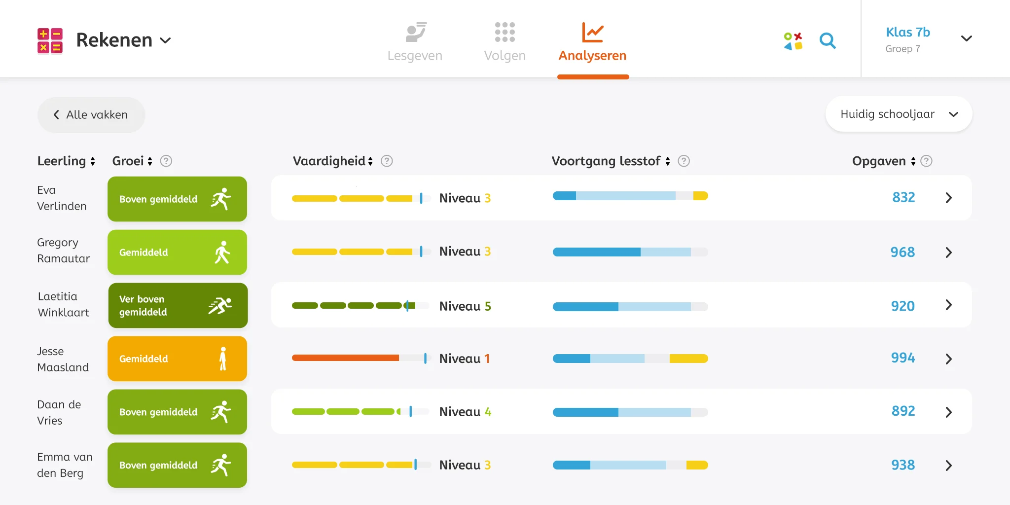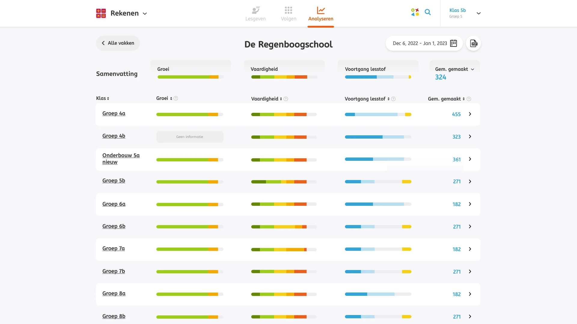 Bij Analyseren in het dashboard kun je al volgen hoe je klas presteert op...